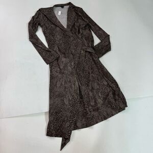 Ann Taylor Wrap Dress Women 10 Long Sleeve Career Snake Stretch Classic New
