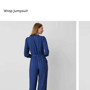 This fluid jumpsuit is beautifully shaped with a wrap-effect front, nipped waist and flowing wide legs. V-neck. Long blouson sleeves with puff shoulders and button cuffs. Elasticized waist with removable D-ring belt. Front slash pockets. Lined.