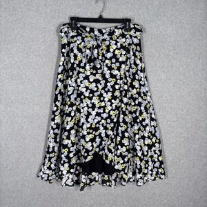Ann Taylor Wrap Midi Skirt 12 Blue Yellow Floral Romantic Flowy Feminine Teacher Womens Black White Yellow Fined Stretch Pleated Tie Belt Loose Mediterranean Ditsy Coquette A Line