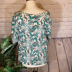 Ann Taylor XL white with teal, black and gray design with 1/3 sleeves