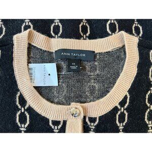 Ann Taylor XS Cardigan Sweater Black Chain Pattern Button-Up, Black Label, New