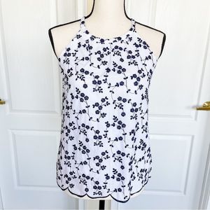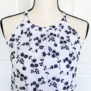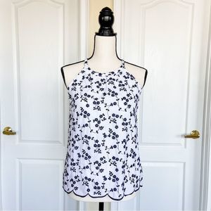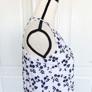 Ann Taylor XXSP Embroidered Floral Black & White Halter Top