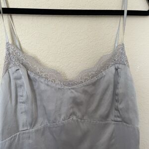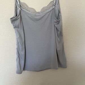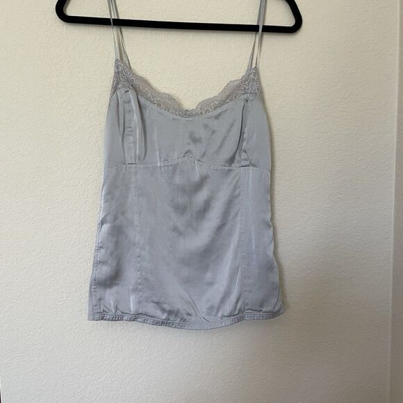 Ann Taylor Y2K Babydoll Tank Womens Large Petite Gray Silk Lace Trim Cami