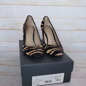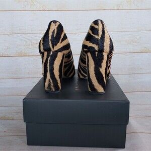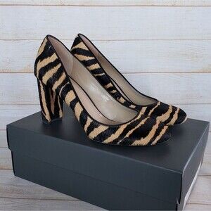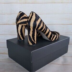 Ann Taylor Zebra Calf Hair Leather Block Heel Pumps Women's Size 8 Black Tan