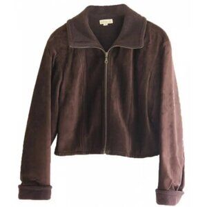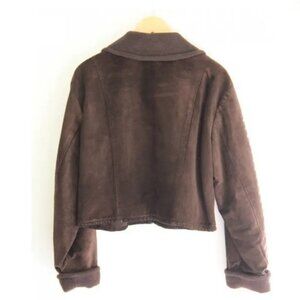 Short suede chocolate brown Ann Taylor jacket with fleece type lining, very cute :)