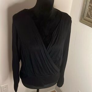 Ann Taylor black crossed draped front long sleeves light sweater sz M