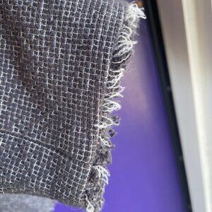 The subtle tweed pattern of the fabric makes it classy; the short fringe makes it fun. Can dress up or down!