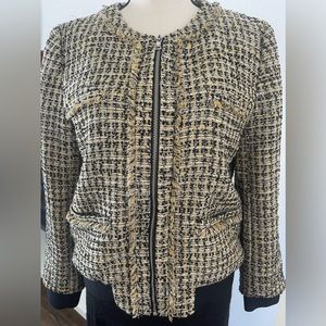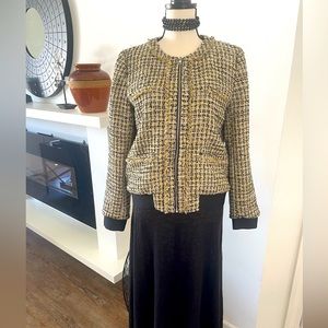 Anna Taylor black, gold and beige bomber jacket on elastic on cuff and hem , it is lined new without tags
