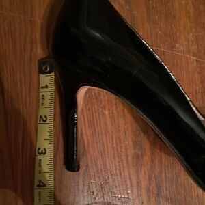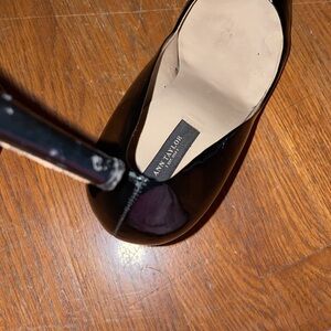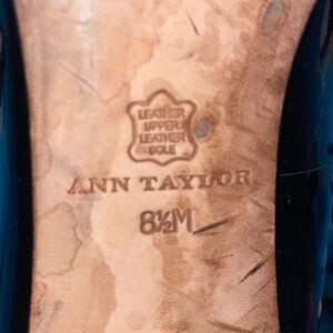 Ann Taylor black leather patent heel pumps Amy winehouse Y2K play theater work