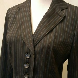 ANN TAYLOR black striped blazer in perfect condition like New. shoulders are 15in the bust is 17in the waist is 15in and armpit down is 15in