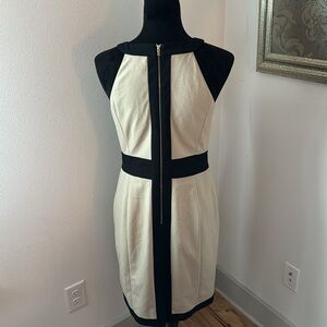 Ann Taylor black tan block front key hole back exposed zipper shift dress Sz 4