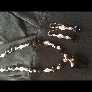 Ann Taylor sleeveless black tank with bulk sateen v neck and custom jeweled black and silver necklace and earrings