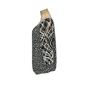 Ann Taylor black white print 3/4 sleeves tunic blouse size Small