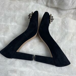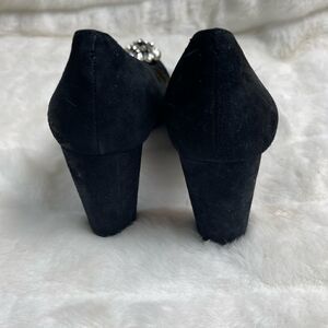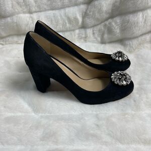 Ann Taylor black suede block heels round toe brooch rhinestones accent SZ7.5M