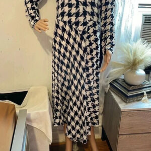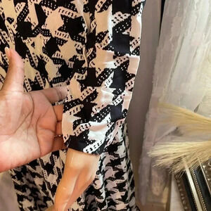 Ann Taylor blak and white houndstooth Asimestrical maxi dress