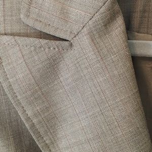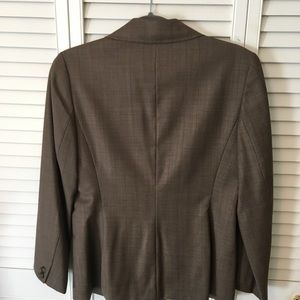 Size 4, like new, light brown blazer with a hint of pinstripe detail to fabric (see close up pictures for detail). Lightweight wool. Fits beautifully.