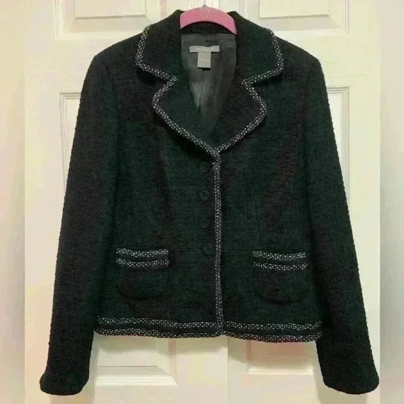 Ann Taylor jacket/ blazer, covered buttons, wool blend, peplum for perfect fit, very nice condition, size 6