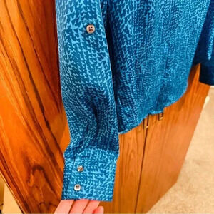 Silky feeling polyester blue dress shirt from Ann Taylor. Great condition. Women’s size 2.