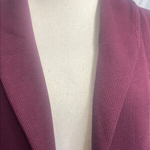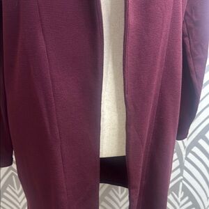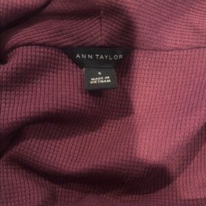 This Ann Taylor cardigan in a rich burgundy hue offers a lightweight, open-front design with long sleeves and a relaxed fit, perfect for layering. The soft, waffle fabric ensures comfort and style, making it an ideal choice for casual occasions. Worn once.
