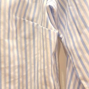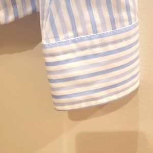 NWT Ann Taylor button down shirt. Size 8. Detailing includes button cuffs and darts for a feminine fit. My seamstress added front snaps to make sure nothing peaks out! Pale blue and white striped.