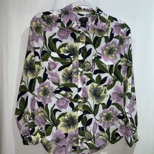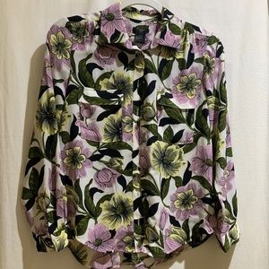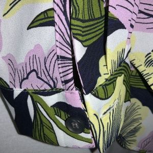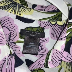 Ann Taylor button front blouse Sz XSP floral button cuff chest pockets