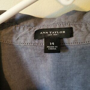 Size 14. Measurements: 20" chest, 24" sleeve length from shoulder seam, 16.5" across the back, 28" in length from collar to hem.