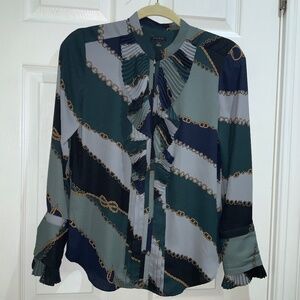 Ann Taylor chain print ruffle front blouse