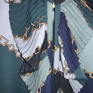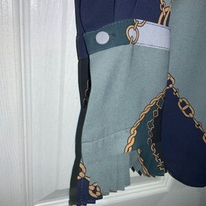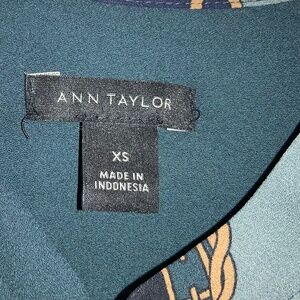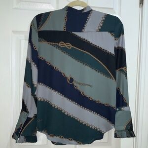 Ann Taylor chain print ruffle front blouse Sz XS long sleeve ruffle cuff