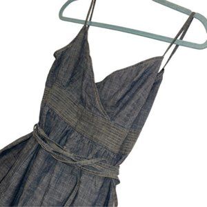 Ann Taylor chambray blue denim-look lightweight TRUE WRAP DRESS L
