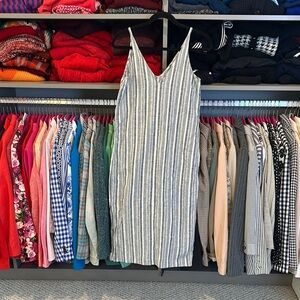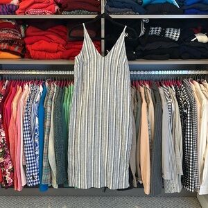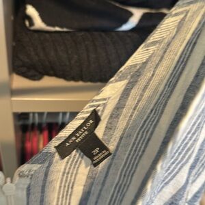 Ann Taylor chambray blue/white striped back zipper closure dress size 2P
