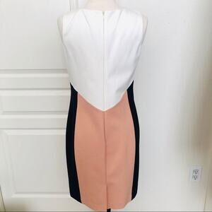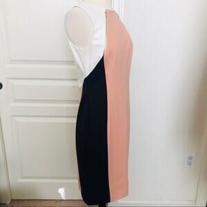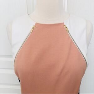 Ann Taylor color block dress in cream/peach/black, Size 4. Gold zipper detailing in front. Zipper closure in back. Worn twice.