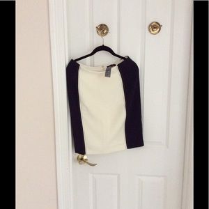 Ann Taylor color block pencil skirt. NWT. Color: Navy blue and cream. 63% polyester, 33% rayon and 4% spandex. 💯% polyester lining.