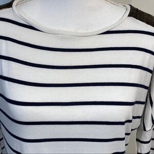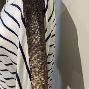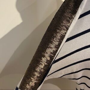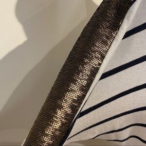 And Taylor cotton white and black striped shirt with gold sequin detail on shoulder 3/4 dolman sleeve tunic length great preowned condition size medium