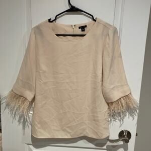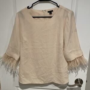 Ann Taylor cream 3/4 feather sleeve blouse