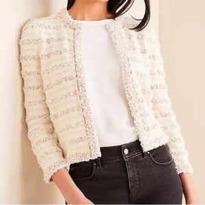 Ann Taylor textured “lady jacket” type cream cardigan sweater. Open front. Size small.