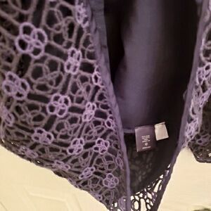 Pre-owned beautiful crochet blue and black lining Small 3/4 sleeves zipper back. excellent condition casual wear