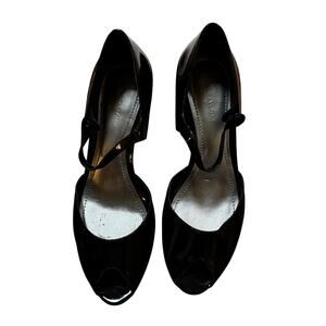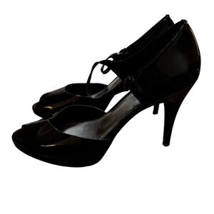 Ann Taylor dark brown/black patent leather platform high heel peep toe shoes 8M