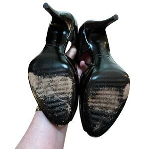 Ann Taylor dark brown/black patent leather platform high heel peep toe shoes 8M