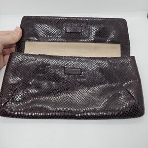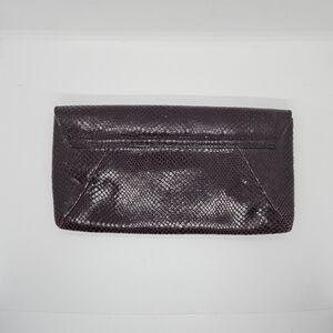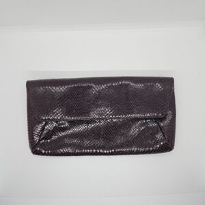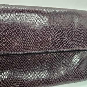 Ann Taylor dark purple leather clutch with snakeskin texture