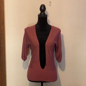 A deep v neck sweater from Ann Taylor, size S. 22” long, 3/4 length sleeves. Wear with a tank underneath or if you’re feeling bold, wear only a bandeau or bralette. Excellent condition.