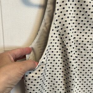 Pre-loved Ann Taylor dress, cream with black polkadots, no pockets.