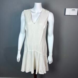 Ann Taylor dress size 4 felt boucle wool cream drop waist school girl minimalist
