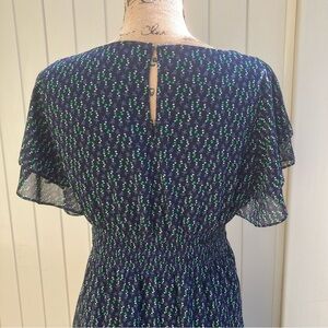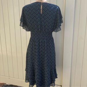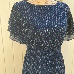 Ann Taylor dress small petite short sleeve navy floral flouncy tiered EUC