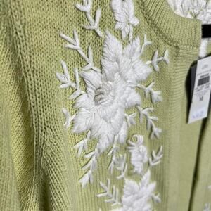 lime green, floral embroidery, button-up cardigan, lightweight sweater, spring fashion, casual chic, embroidered details, TXL knit, feminine style, new with tags