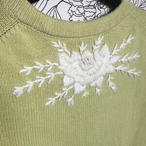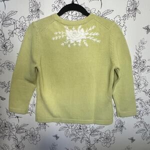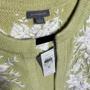 Ann Taylor Lime Green Cardigan Sweater With White Floral Embroidery size medium