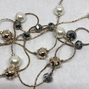 Ann Taylor faux pearl crystal double leyer long necklace NWT