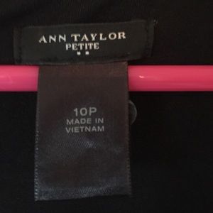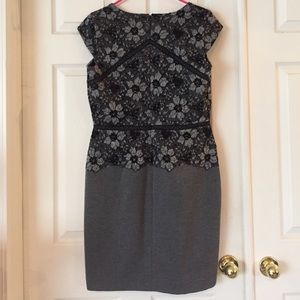 Ann Taylor gray/black floral print deep scoop neck, cap-sleeve dress w/defined waist. Some stretch. Back zip. Size 10P. 37" from shoulder to hem.