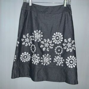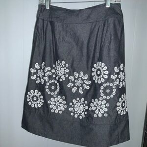 Ann Taylor gray cotton blend floral embroidered Skirt sz 4 lined