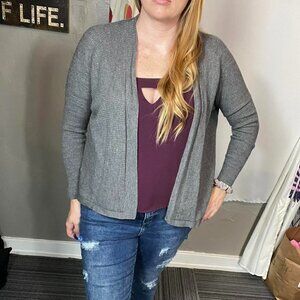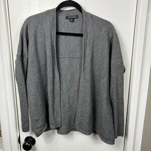 Ann Taylor dark gray merino wool textured open cardigan. Ribbed trim. 100% extra fine merino wool. Size medium