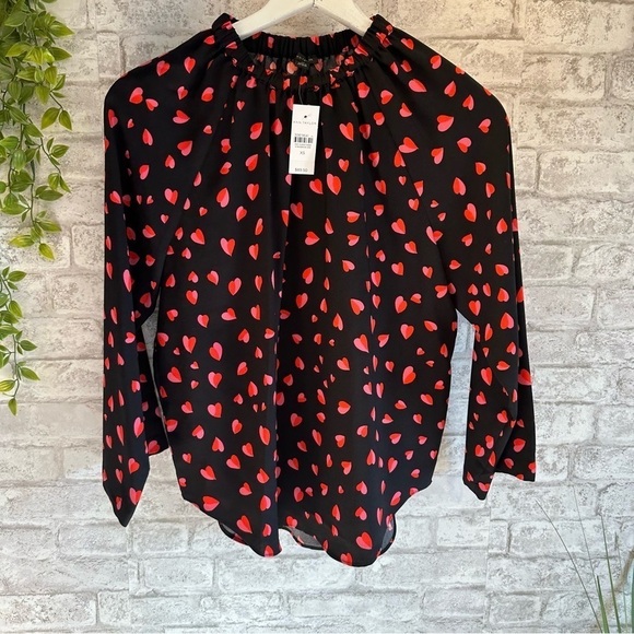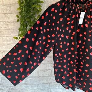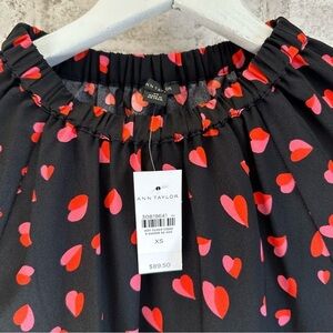 Ann Taylor heart novelty print blouse women’s size XS NWT black red and pink